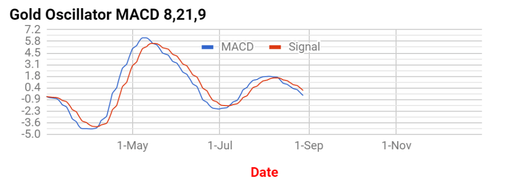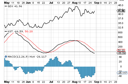 The middle figure is the clearest in terms of momentum movement, which allows you to see what I think is an imminent turn-up from the downtrend or flat correction from July, into an uptrend sometime in September. I won’t belabor the obvious, and tell you what I think you do, because I think if your reading this your savvy enough to know.