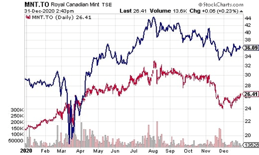 Won’t there always be Gold to buy in Bullion Coin form ? Yes but at what price ? The fractionaRCM Gold coin I bought back in 2015, when everyone was sure Gold was going to break down and go to Hell in a hand basket, has doubled since then, with no attention from me. Its resting comfortably. Silver on the other hand has been an uneasy rider from that point forward, the bullion coins returning to their post mania plateau of days past, only this year. So were are we at: Gold has doubled, and Silver is back where it was in the years following its Post-Mania correction.